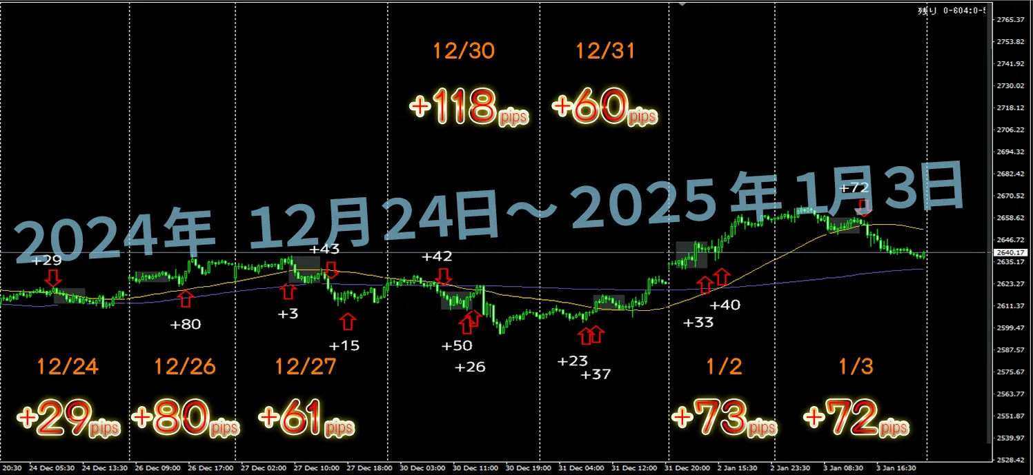 先週+323pips!12/30~1/3の部分をご覧ください。