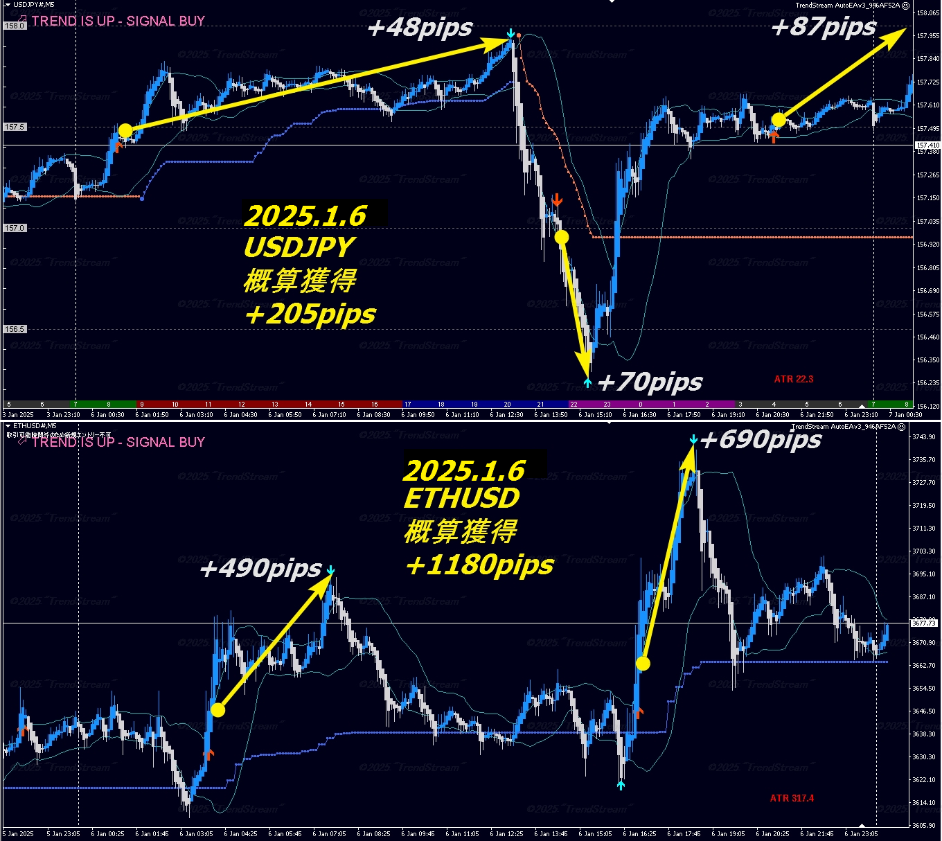 2025.1.6 裏技5分足デイトレ USDJPY+205pips / ETHUSD+1180pips 『過去検証結果』