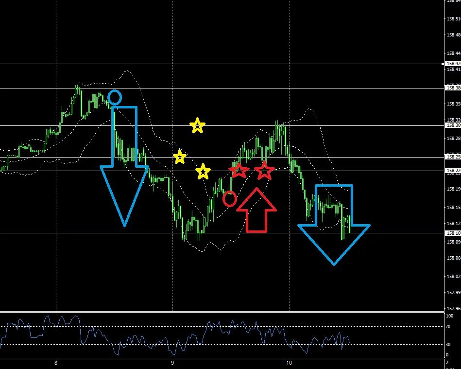 億トレユーザの皆様は、赤青〇が何処なのかを時間軸を変えて色々確認してください。