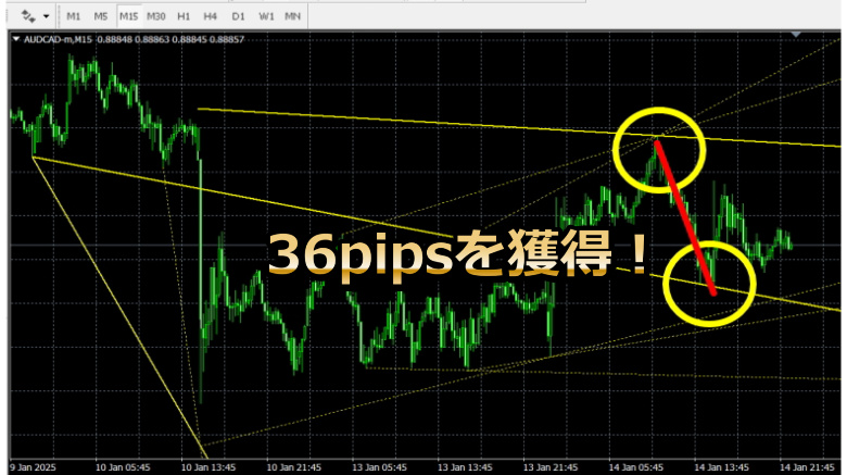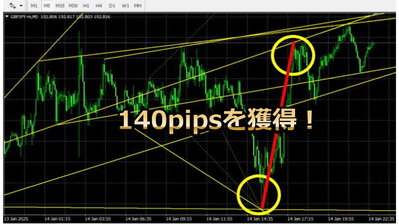 【2025年1月15日の実績】【ラインブレーク】相場の転換点を捉えるFXインジケーター。