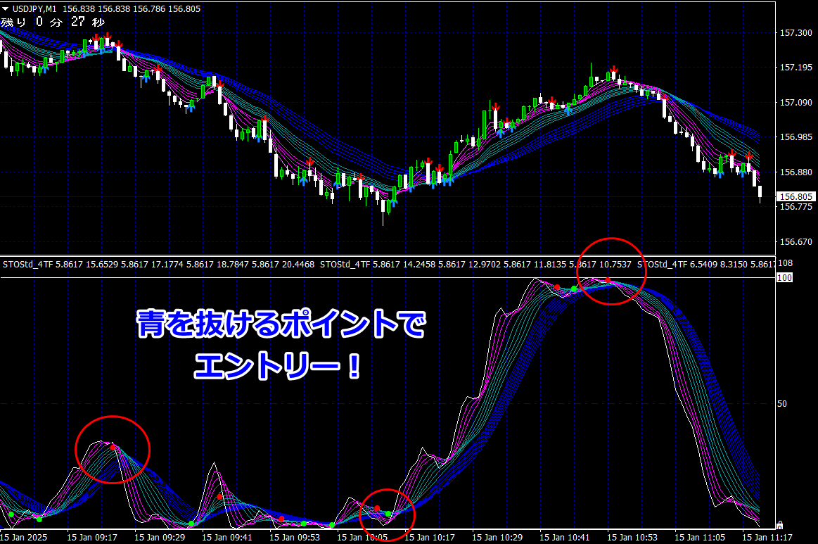 従いまして、上昇にしろ、下落にしろ、エントリーのねらい目は