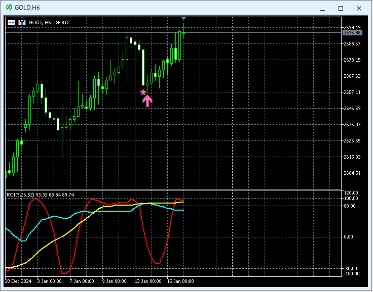【MT5版】mBDSR(RCI2本フィルター)の押し目買いサイン ゴールド XAUUSD