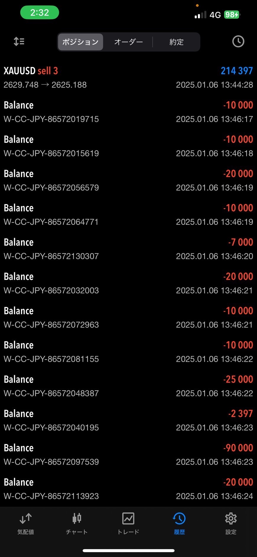 載せ忘れてました。01/06のXAUUSDのトレードです、この日は+210,000JPY、出金200,000JPYです。