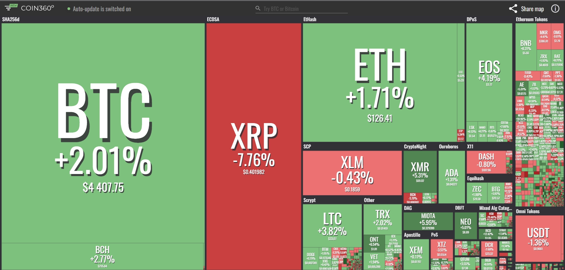 coinmarketcap(コインマーケットキャップ)のサイトから、ドミナンス(各銘柄が仮想通貨全体の時価総額に占めるパーセンテージ)を定点観測していきます。仮想通貨全般が下方向に大きく動き出している相場状況を受け、毎日更新することとし、仮想通貨業界を俯瞰および転換期を早期に発見することを目的とします。