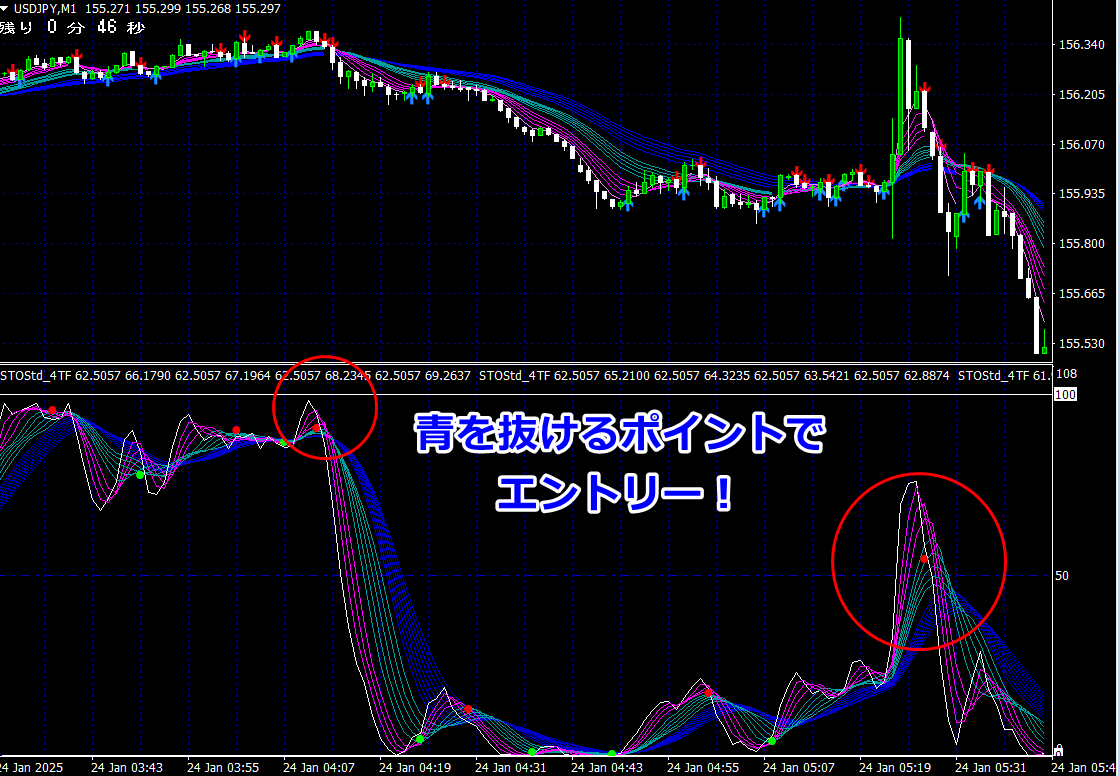 従いまして、上昇にしろ、下落にしろ、エントリーのねらい目は