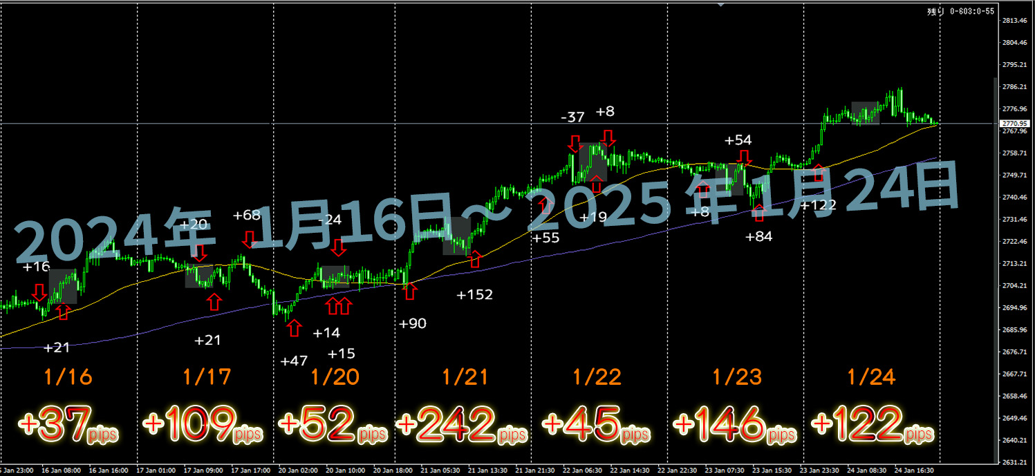 先週+607pips!1/20~1/24の部分をご覧ください。