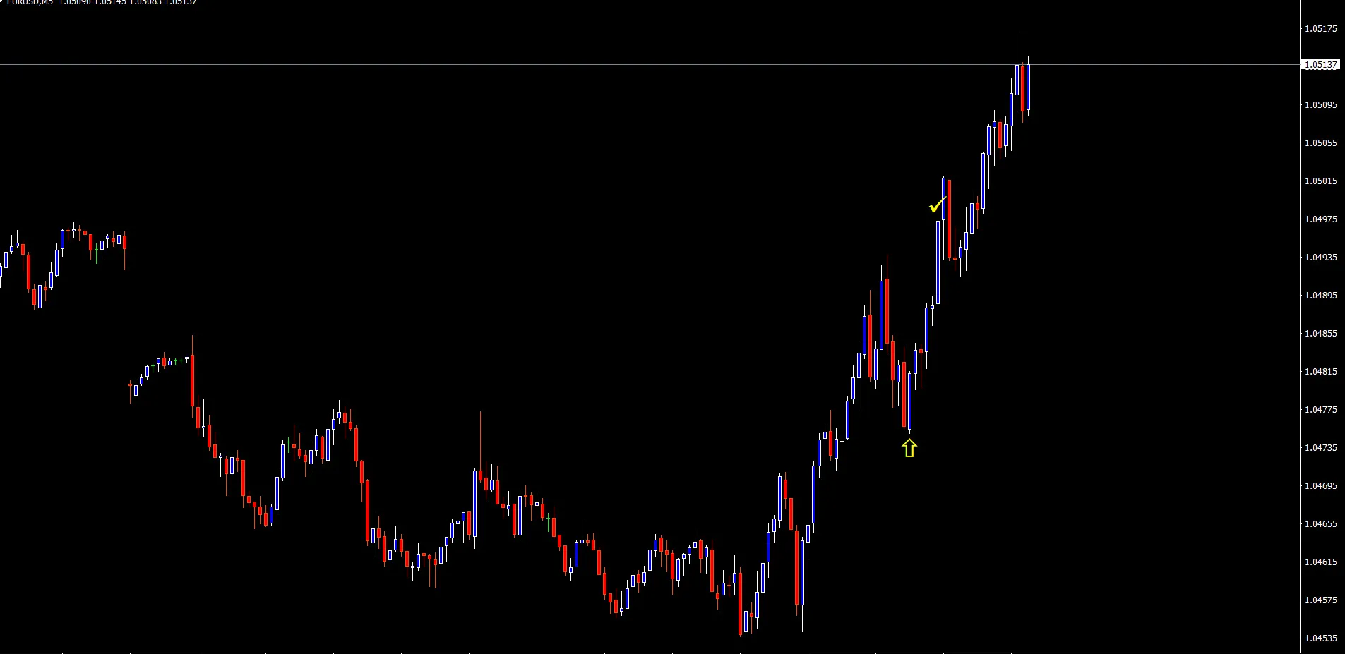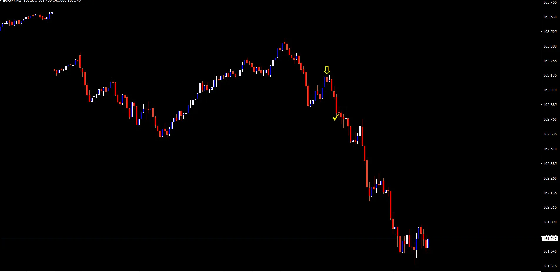 また、矢印の足の始値で入りますので、ほとんど含み損はない状態からスタートできます。