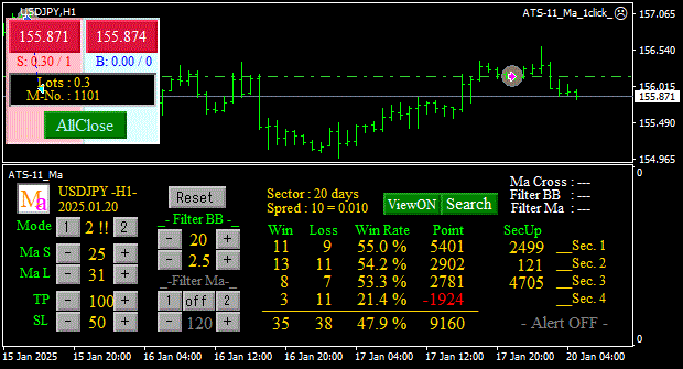 集計期間:2025/1/20~1/25(証拠金1,000,000円 / 0.3Lots で取引)