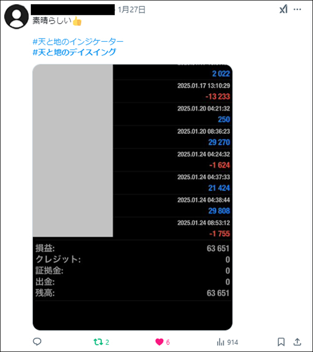 ※これらは正真正銘ユーザー様から届いたDMです。サクラ等の類では一切ございませんので安心してご観覧ください。*(旧T******)で「#天と地のインジケーター」で検索すると同様のポストが出てきます。