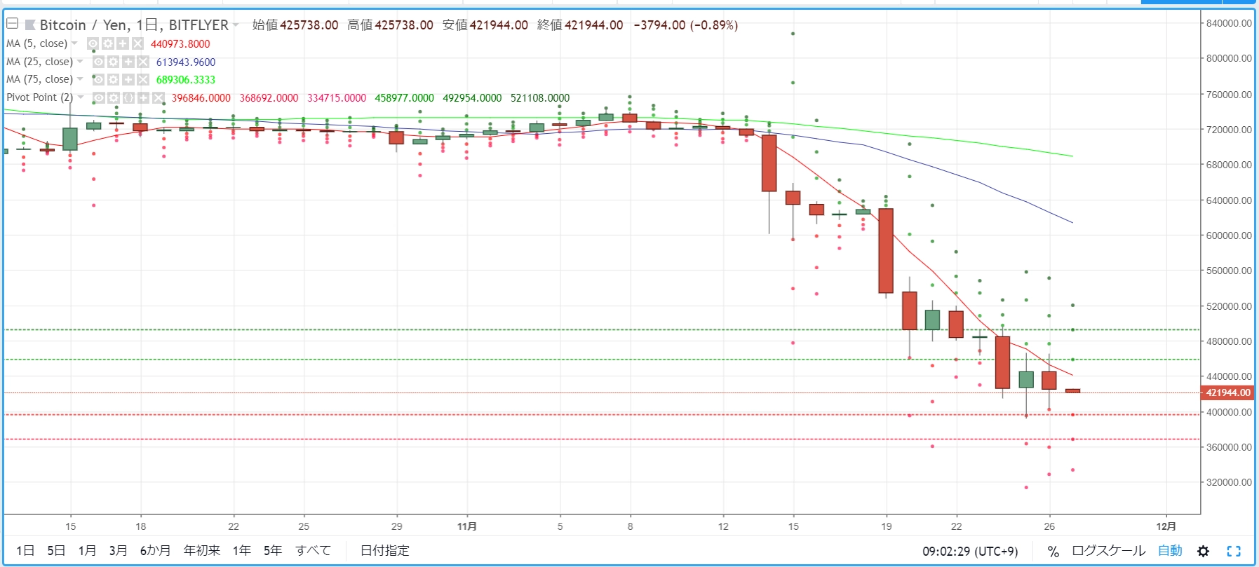 COIN360°:再下落からの調整