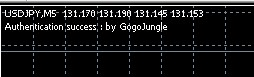 わたし:「左上のコメント表示がないということは、EAが読み込まれていない可能性があります。本当に使用している通貨ペアはUSDJPY.oj5k / USDJPY.oj3m / USDJPY.oj5m のいずれかで合っていますか?」