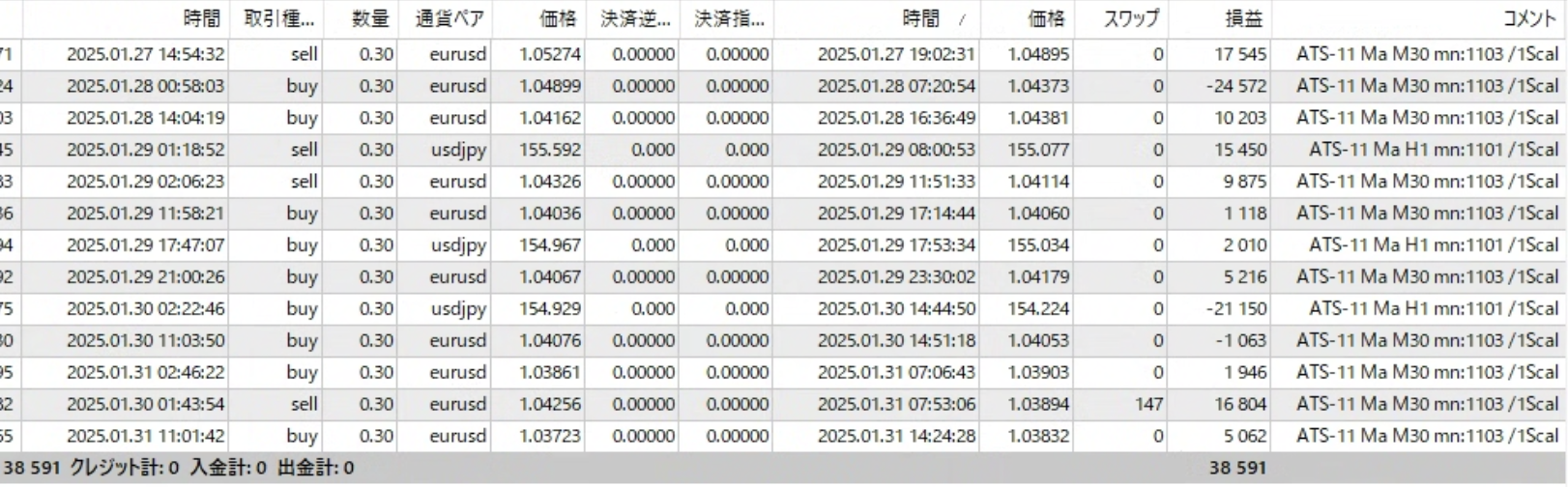 集計期間:2025/1/27~2/1(証拠金1,000,000円 / 0.3Lots で取引)
