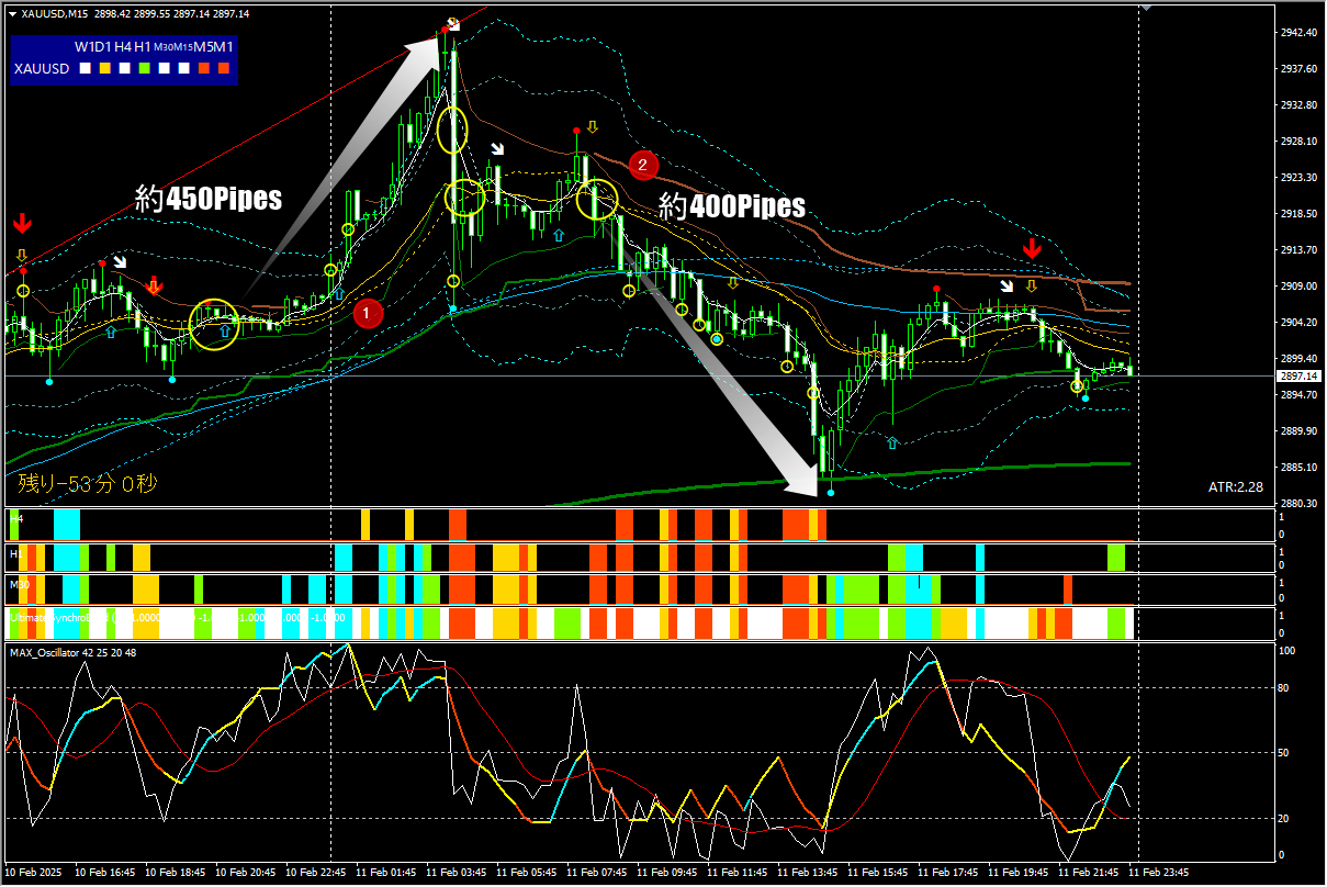②シンクロバンド。上位足整合シンクロ開始・再開!