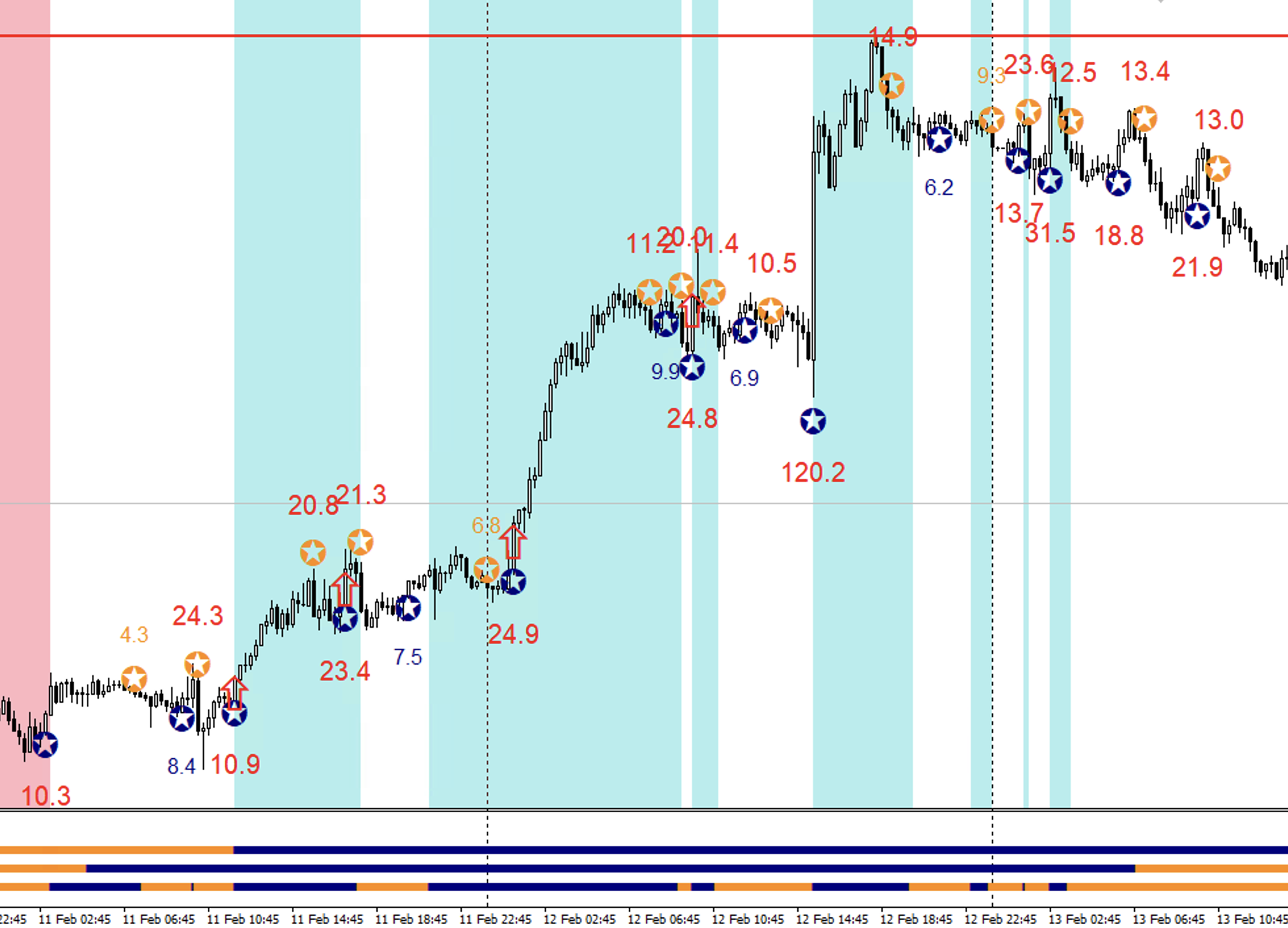 2月11日〜13日は、下降トレンドの戻しの局面で、上昇傾向となりました。