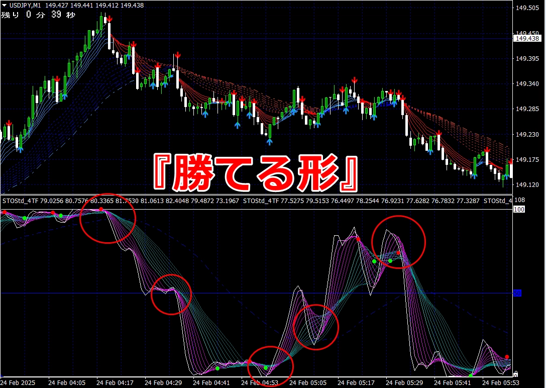 従いまして、上昇にしろ、下落にしろ、エントリーのねらい目は