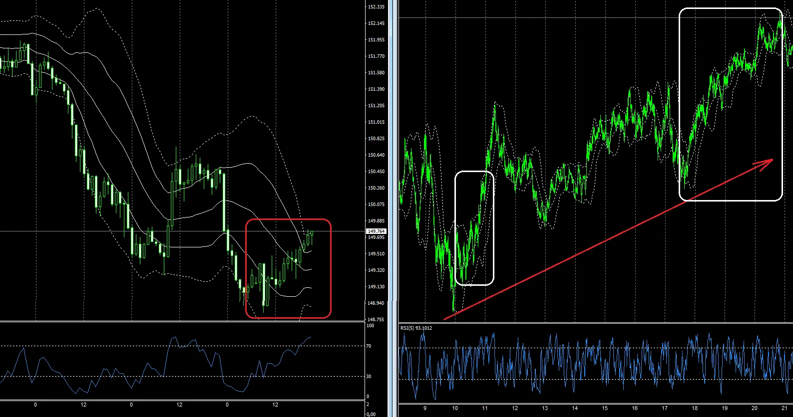 そこから上昇していく訳ですが、右の1分足はと言うと、10時過ぎからロング億トレラインを超えながら上昇。