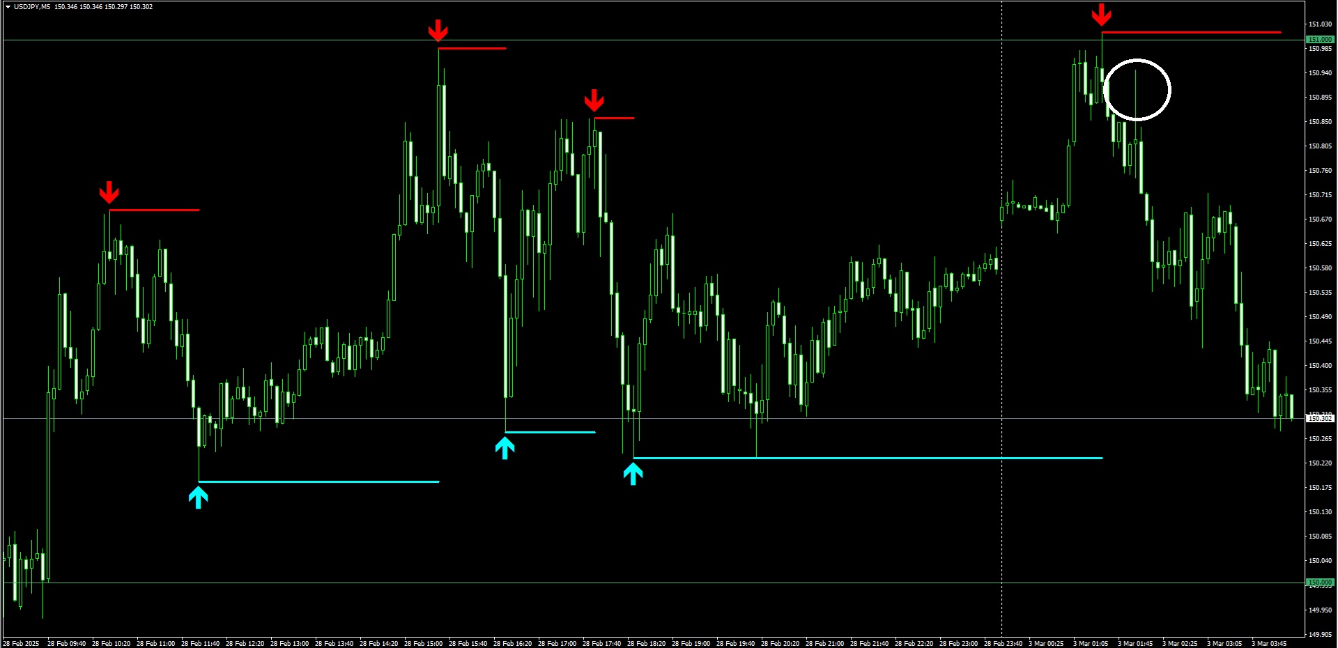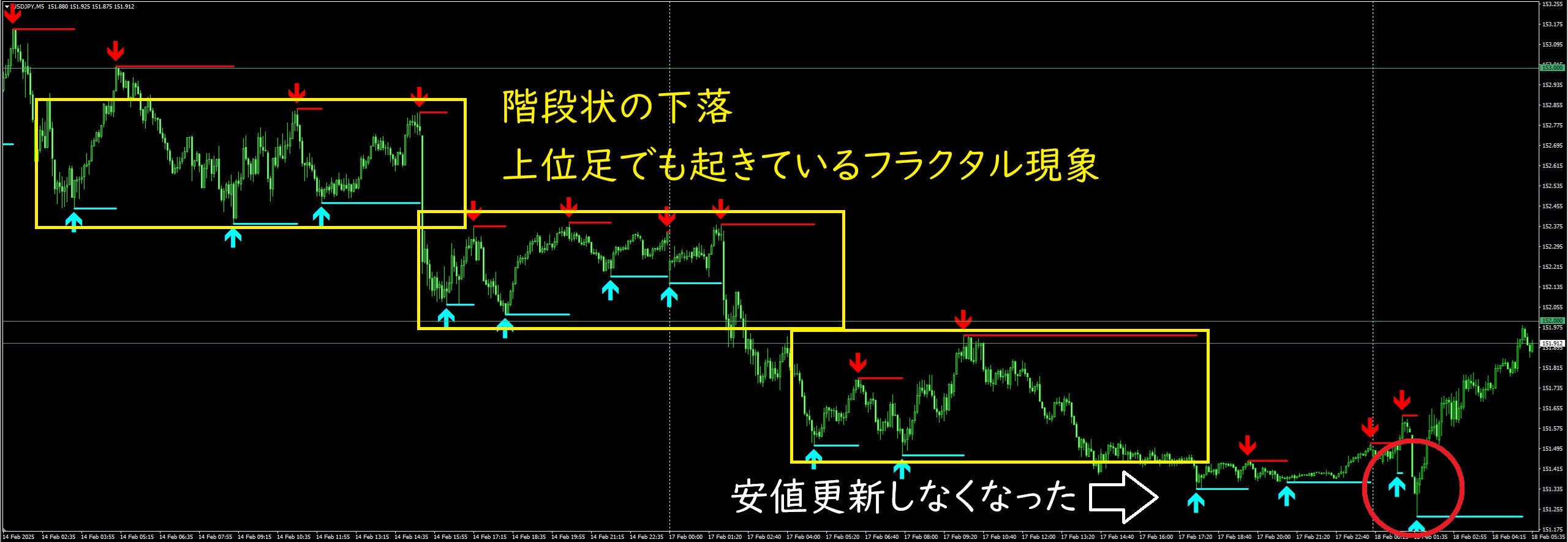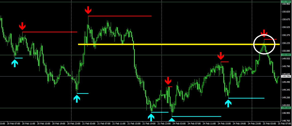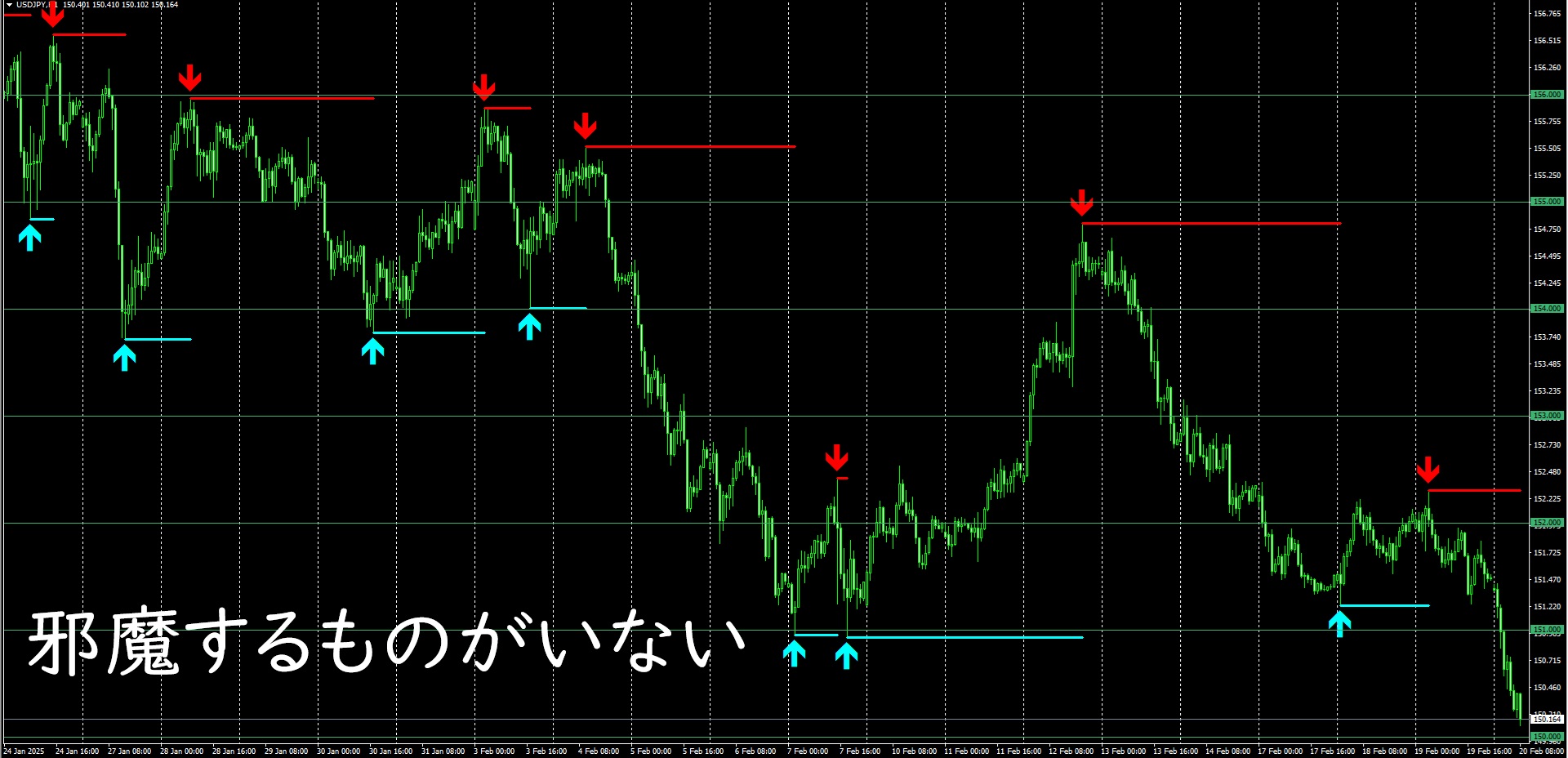 兼ねてから「4時間足レベルでは12月上旬に見せたように150円を挟んで乱高下する」と動画などで話しておりましたが、現時点ではその仮説が的中しています。