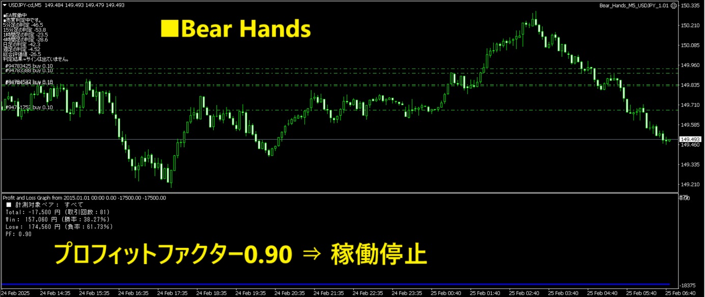 デモフォワードテストではマイナスだが、低リスク安定型運用例(Ver1.02)だとプラスになっているので継続運用。