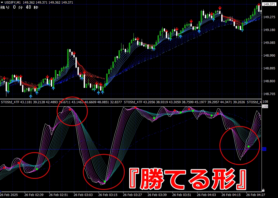 従いまして、上昇にしろ、下落にしろ、エントリーのねらい目は