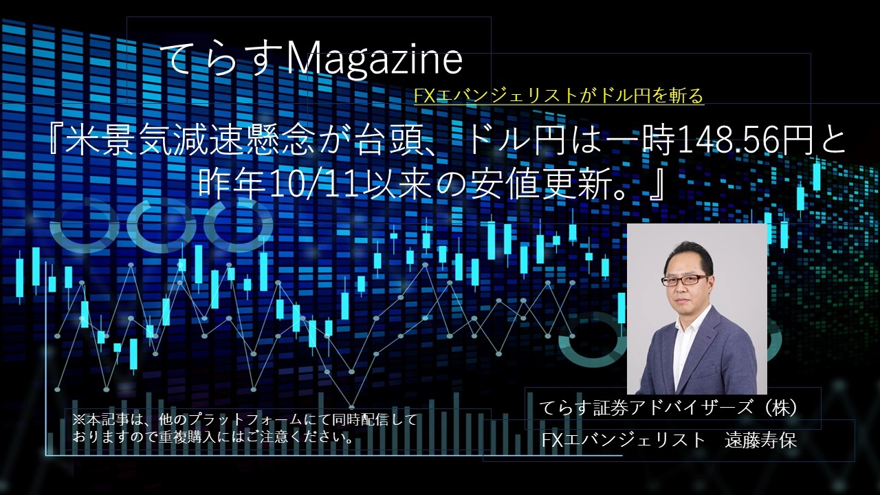 トランプ関税を嫌気した米株下落を受け、ドル円は148円台後半まで下落。