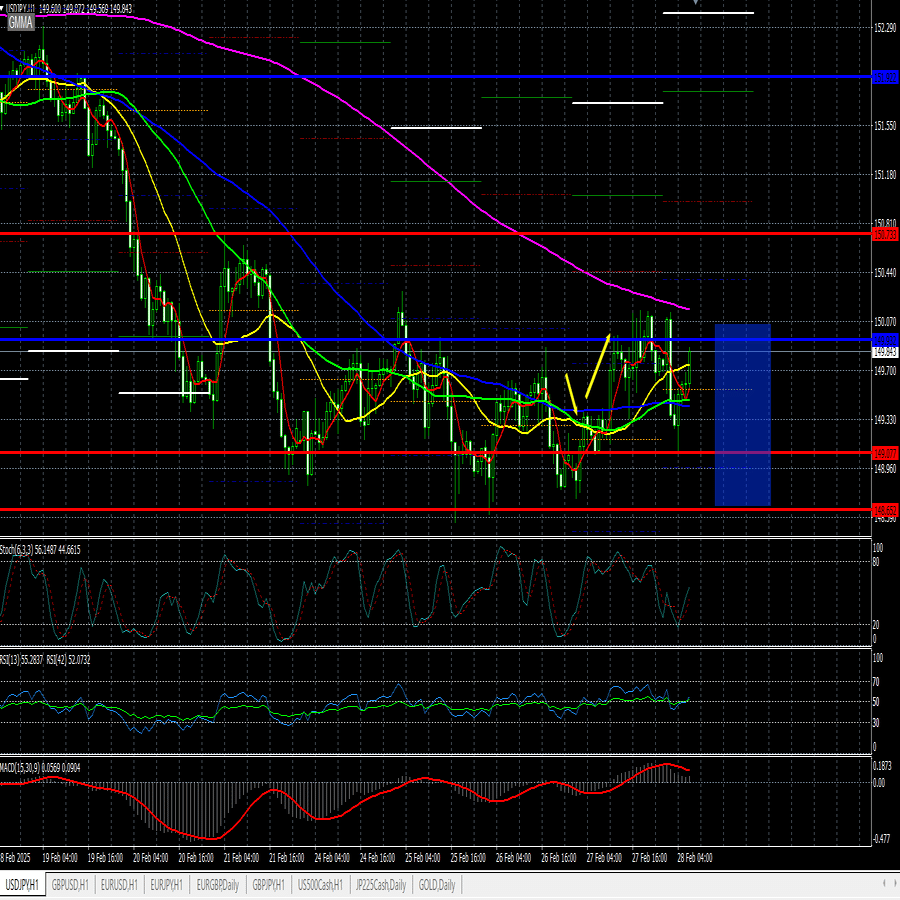 東京時間早朝に148.76円まで下落し、26日に付けた4ヶ月半ぶり安値水準に接近