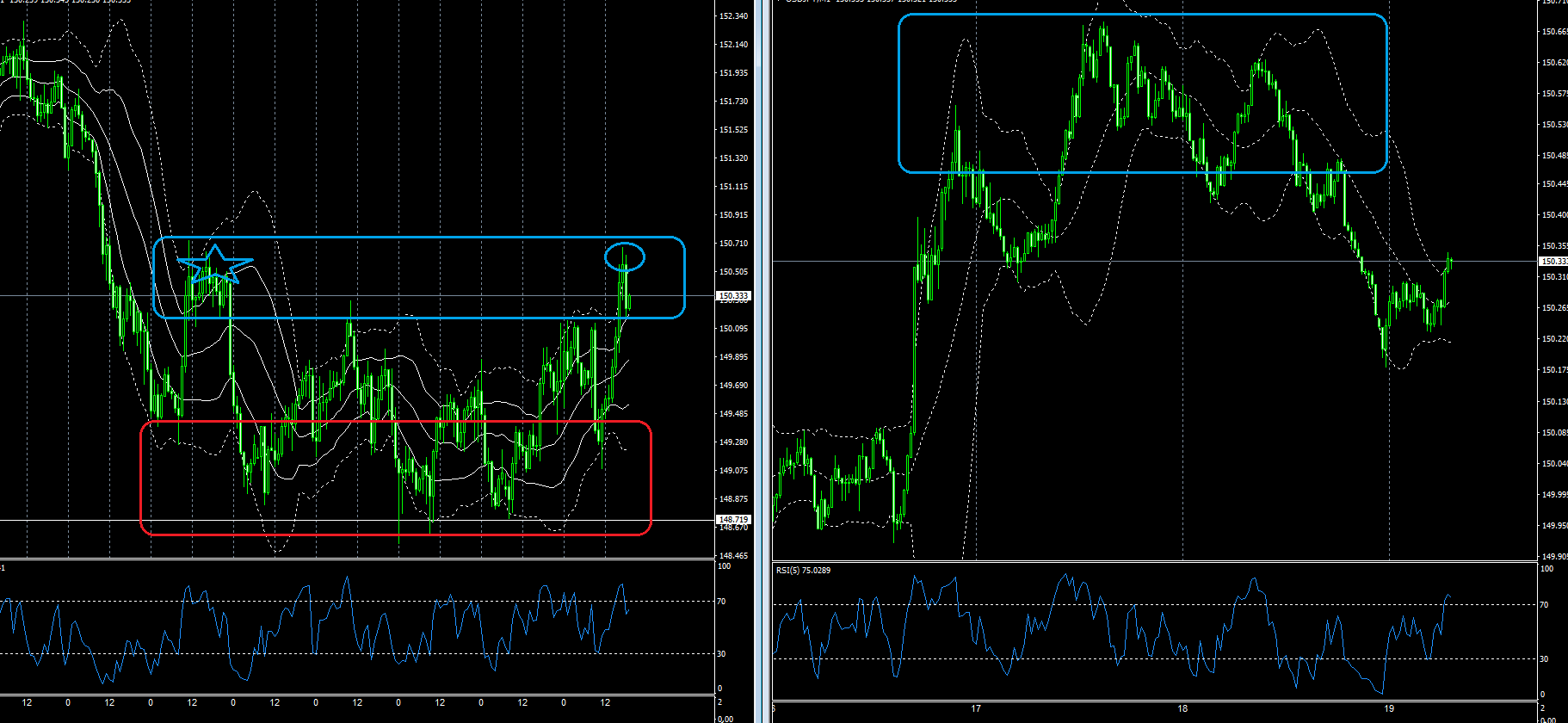 右1分足で言えば、青□ゾーンの高値付近で待ち構えてショートするトレード
