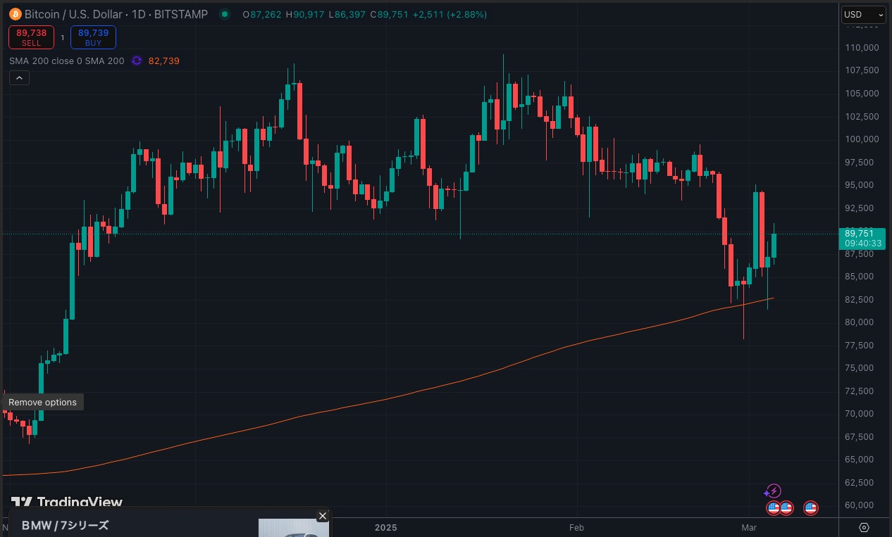 非常に大きな下落となり、恐怖指数が15を記録するなどした2月28日ですが、その2日後にはトランプ氏がビットコインやその他のXRPやADAの戦略的備蓄を検討するなどの発言で一気に上昇、95000ドル付近まで記録し、その次の日にはカナダ、メキシコへの関税の発言で、上昇した分だけ一気に下落するなど不安定な相場が続いている状況です。
