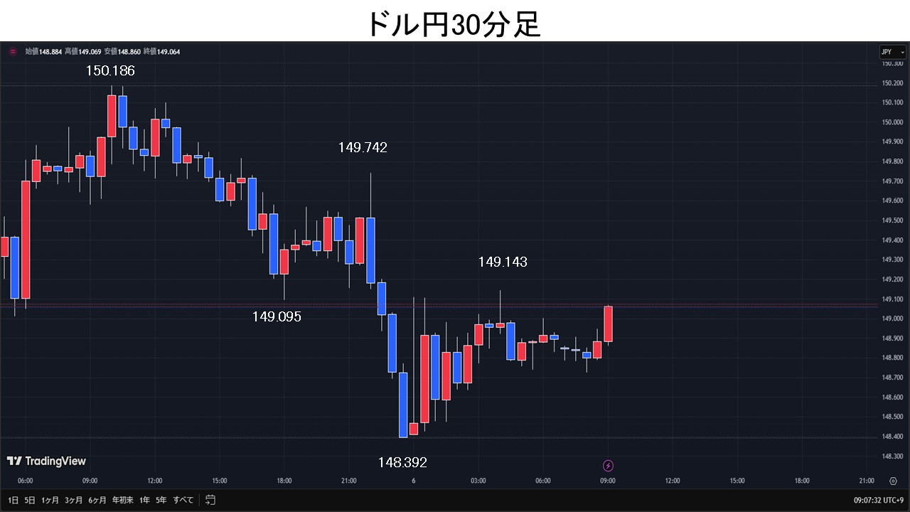 ドル円は、トランプ関税で不安定な動きの中、ADP予想下振れで一時148円台前半へ反落。