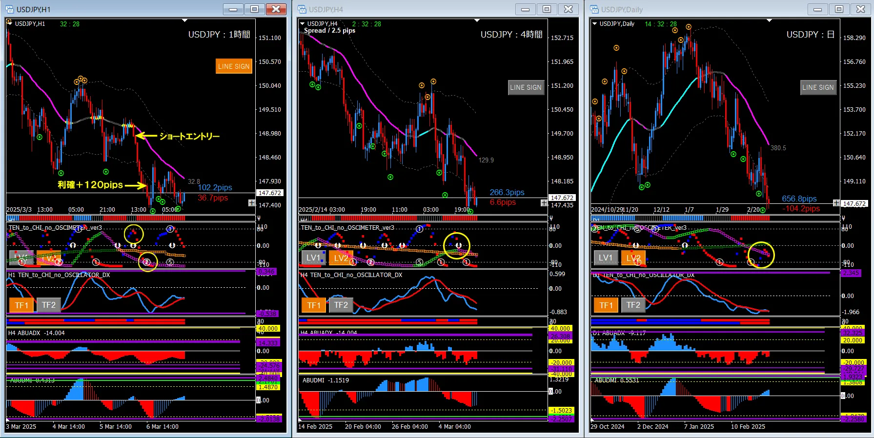 ドル円(USDJPY)/ 1時間足+4時間足+日足 過去検証