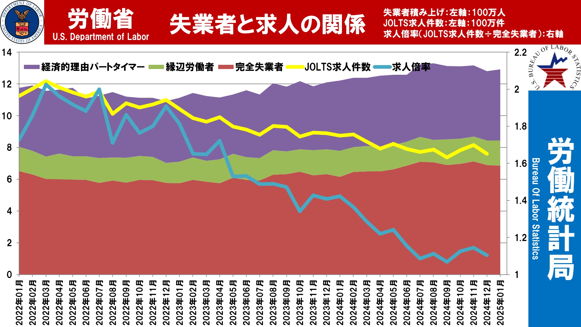 参考までに12月までのJOLTS求人件数と失業者の相関図を載せておきます。