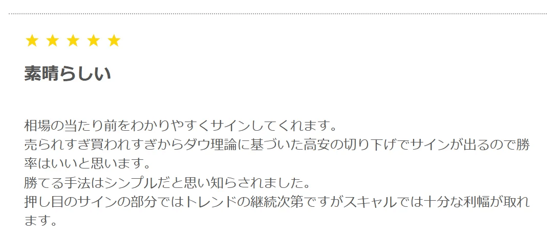 ただの矢印サインツールではなく、勝ち続けるための”本物の素晴らしい英知”が詰まっているからこそ、多くのトレーダーが結果を出し、支持され続けてる理由です。(←断言できる)
