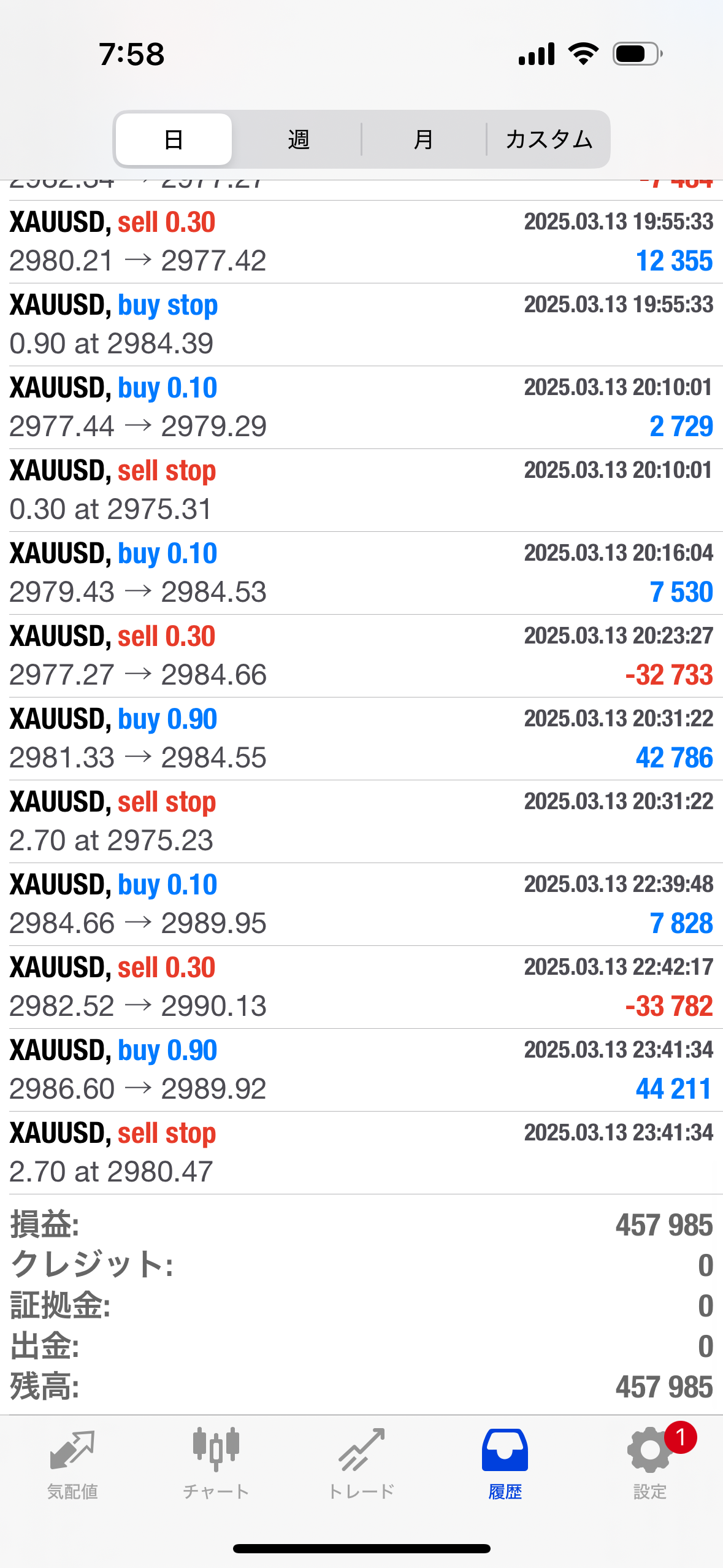トレードプロコントローラーの逆指値両建てロジック! 3月13日 日利4%超え!昨日のゴールドでの稼働状況!