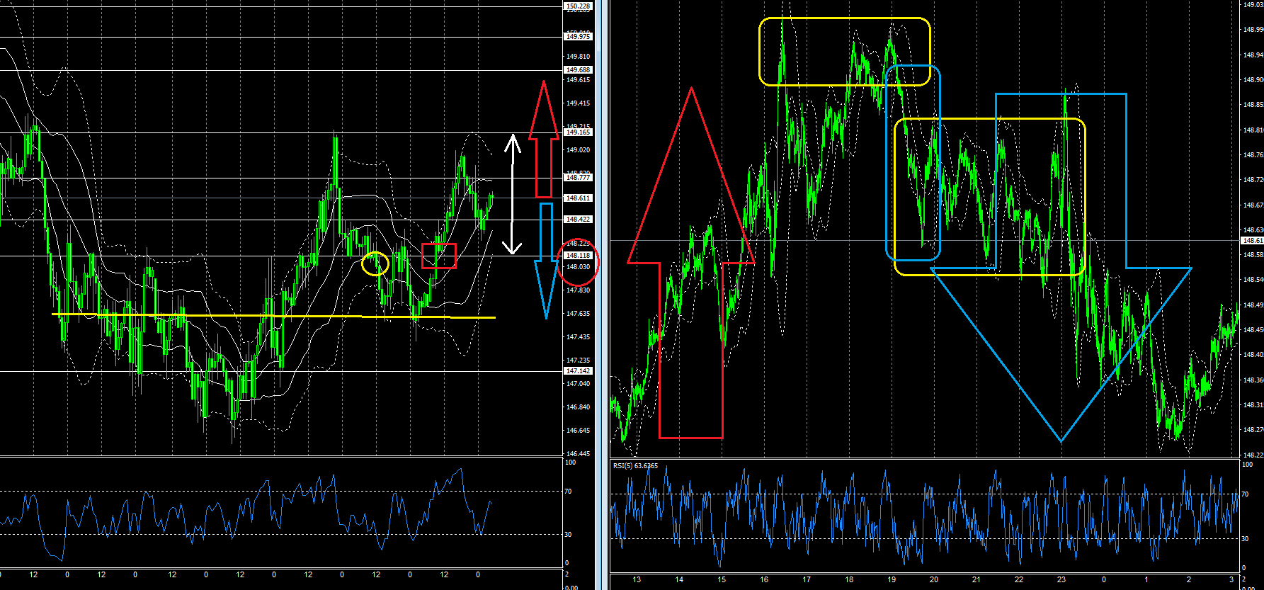 このロング億トレラインが消滅するとすれば、恐らく148~147ミドル割れかなと思っております。