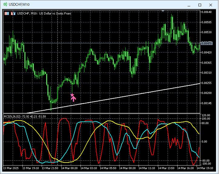 上位足のチャートについては省略。また、RCIを使った上位足から下位足への落とし込みについては付属のPDFで詳しく説明しているので、それについてもここでは省略。