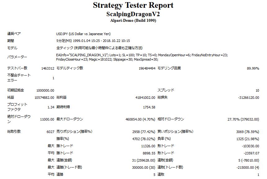 ドローダウンからのリカバリーが早い!『スキャルピングドラゴンV2』