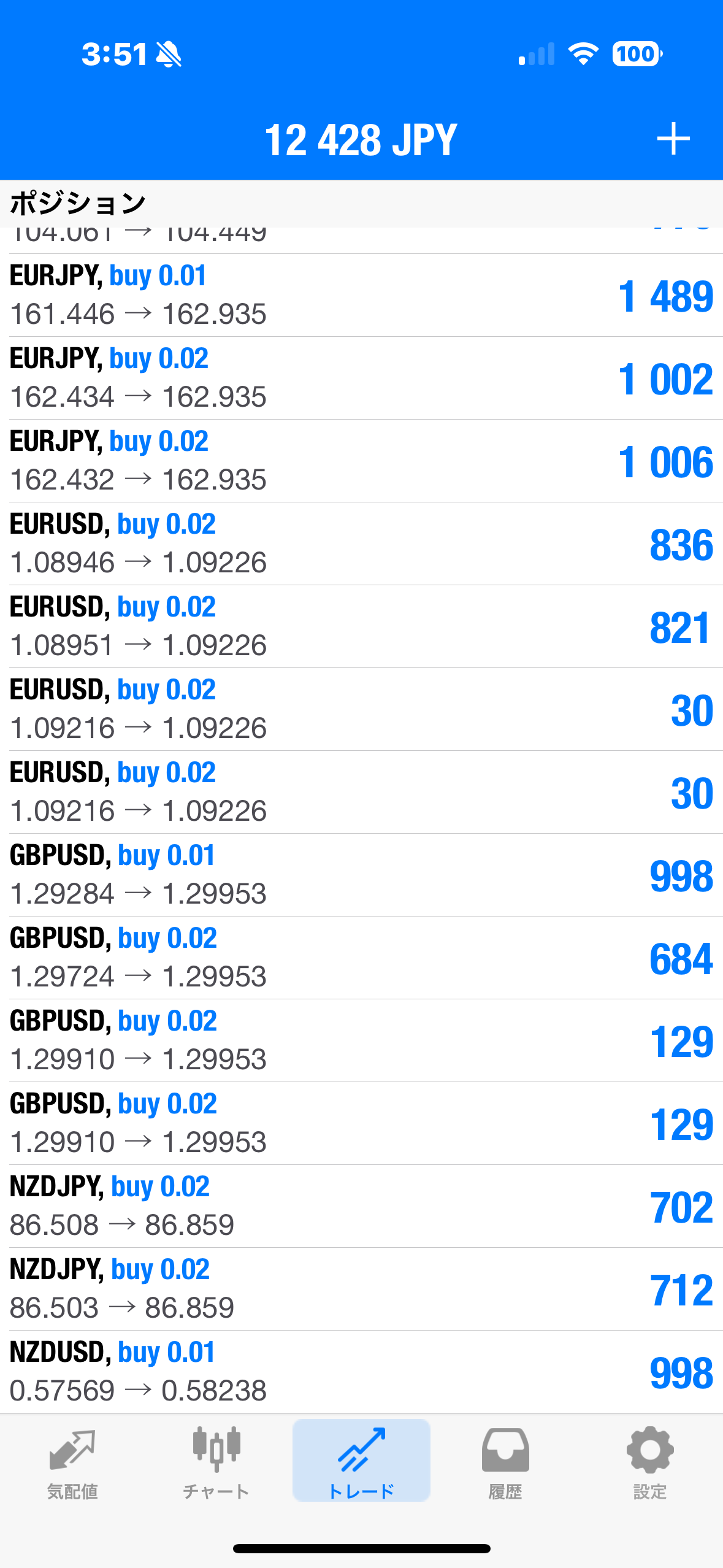 今週も引き続き利確と含み益を積み上げております 4時間足でもこれだけのトレード数があります。 残念ながら全勝ではありません