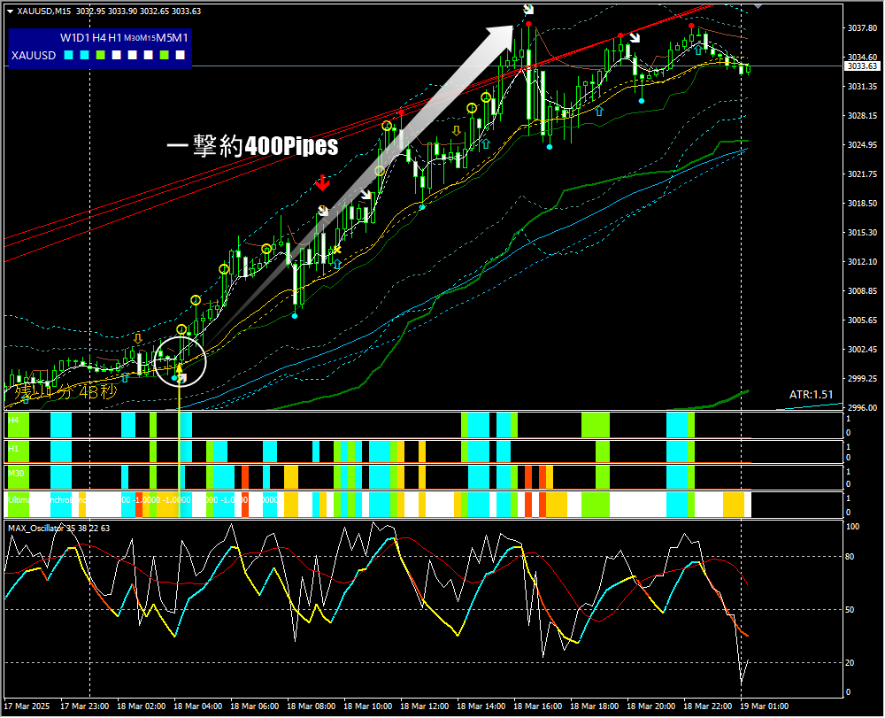 ※この時15分足では、下弱シンクロ、1時間足では上弱シンクロと