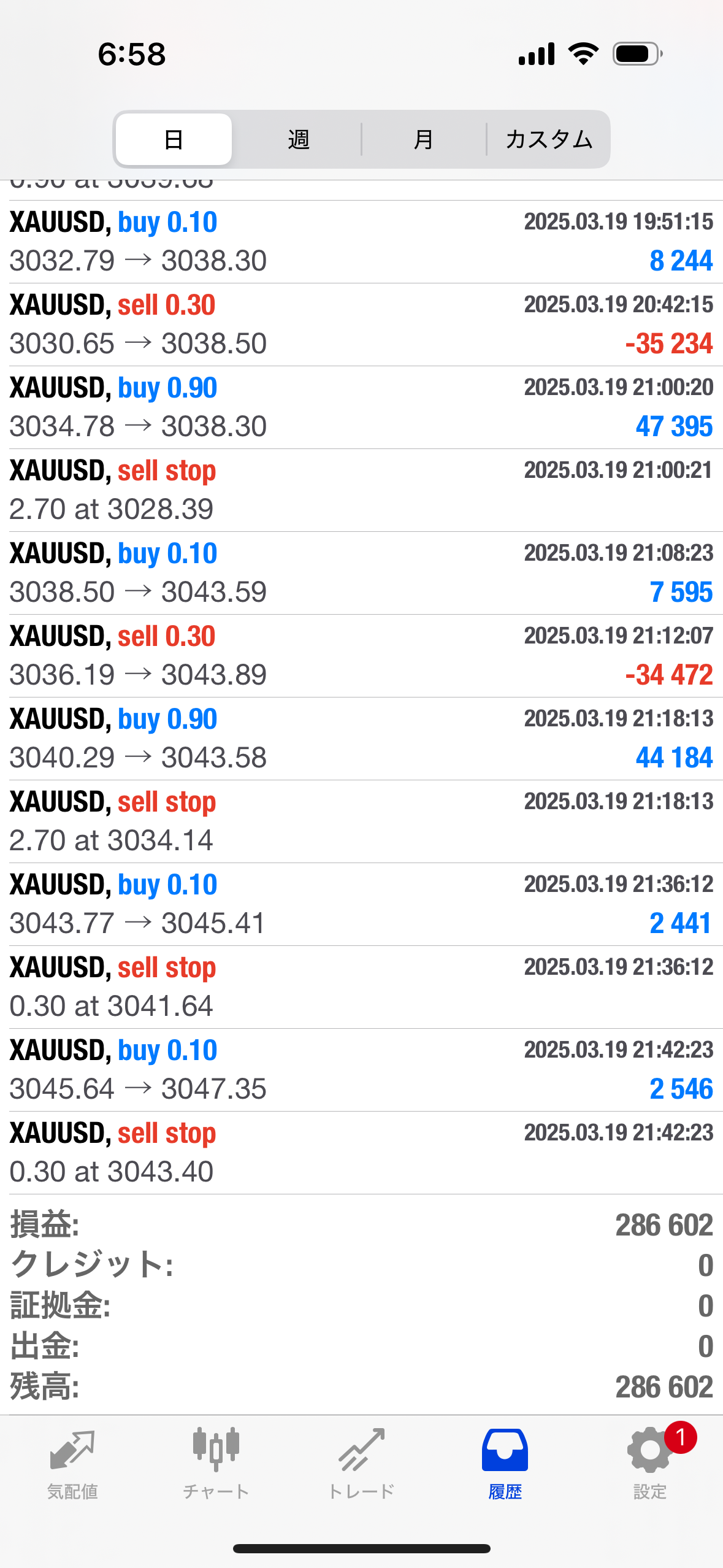 トレードプロコントローラーの逆指値両建てロジック! 3月19日昨日のゴールドでの稼働状況!