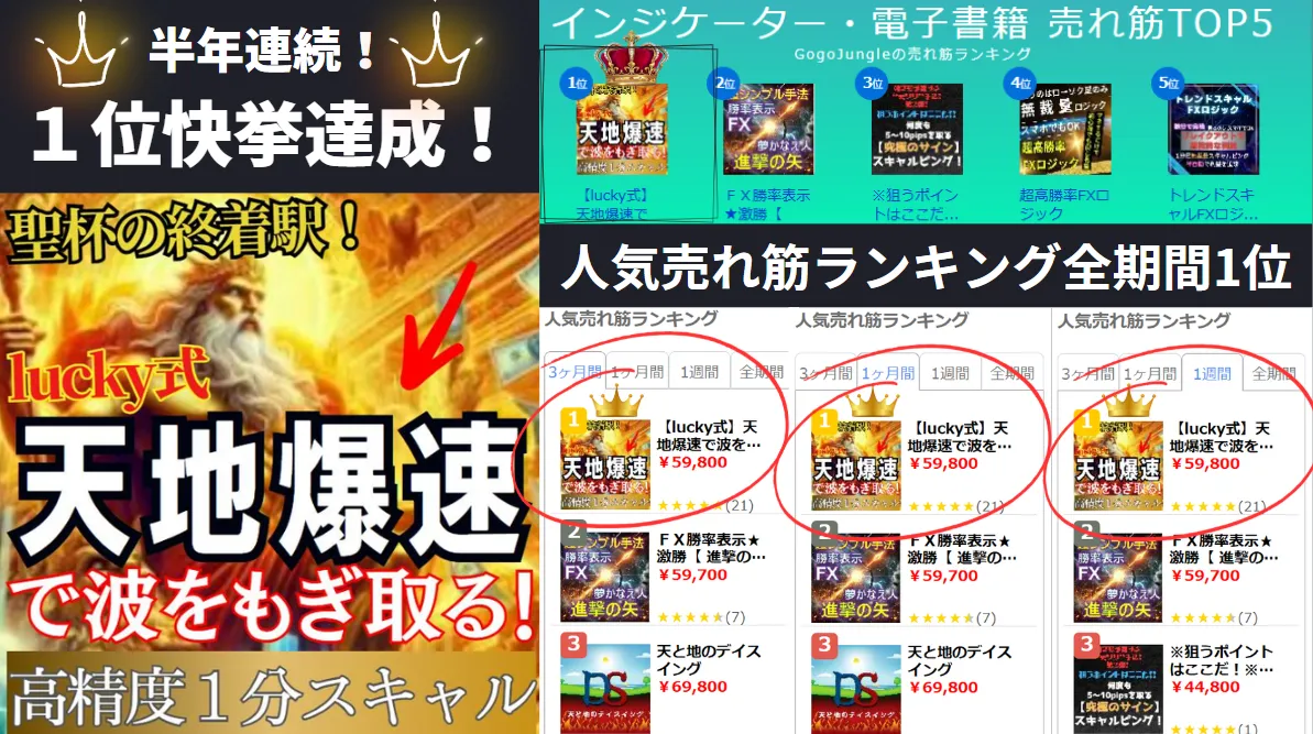 この度、天地爆速インシケーターを購入させて頂きました。FXの経験は10年くらいになります。色々な聖杯手法を探しては一喜一憂し、最後は負けるといった典型的な自分の軸が無いトレードを繰り返していました。このままじゃいけないと思い本気になり行き着いたのはlucky先生の天地爆速でした。こんなに凄いインジケーターがあったなんて驚きの毎日です。これからlucky先生のインジケーターと思考を重ね合わせて相場に挑んで行きたいと思います。