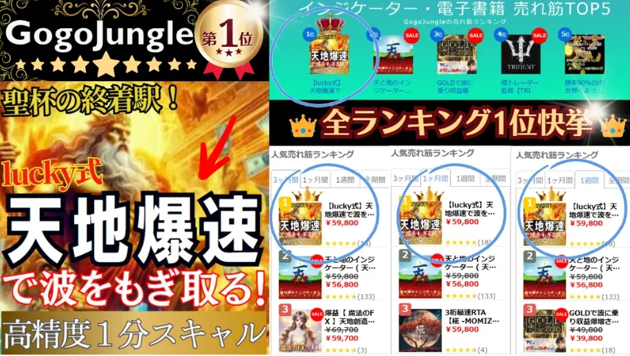 先日購入した「天地爆速」と「【最新版2024】破壊力抜群」のインジケーターを愛用しております。 特に、「FXの教科書 リペイント無し矢印の法則」に記載されている内容は、プロのトレーダーでなければ、ここまで本質的なことは書けないと思いました。 ちなみに、私のトレード歴はまだ1年半ですが、gogojungleで様々なインジケーターを購入した経験があります。 過去に、売れ行きの良いインジケーターを提供している方のサロンにも参加しましたが、どうしても内容に納得がいかず、初回の講習だけで参加をやめました。 その後、別のFXサロンに参加したところ、そちらの先生は本物の億トレーダーで、教えていただいた内容がLucky先生の考え方と全く一致しており驚きました。 その先生から教わった内容を実践する上で、補助となるインジケーターを探していたところ、Lucky先生のインジケーターにたどり着きました。