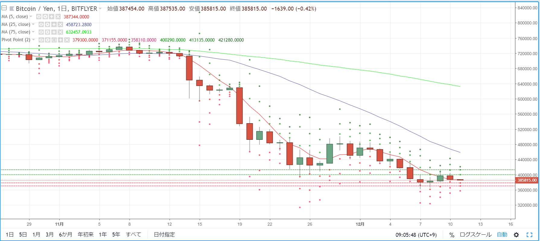 画像は2018年12月12日のキャプチャ。昨日は下げの本流に回帰し、主要どころが2~5%の下落を見せました。その流れを引き継ぎ、今日も全面的に「赤」。昨日と同じく、主要どころは2~5%の下落を続けています。