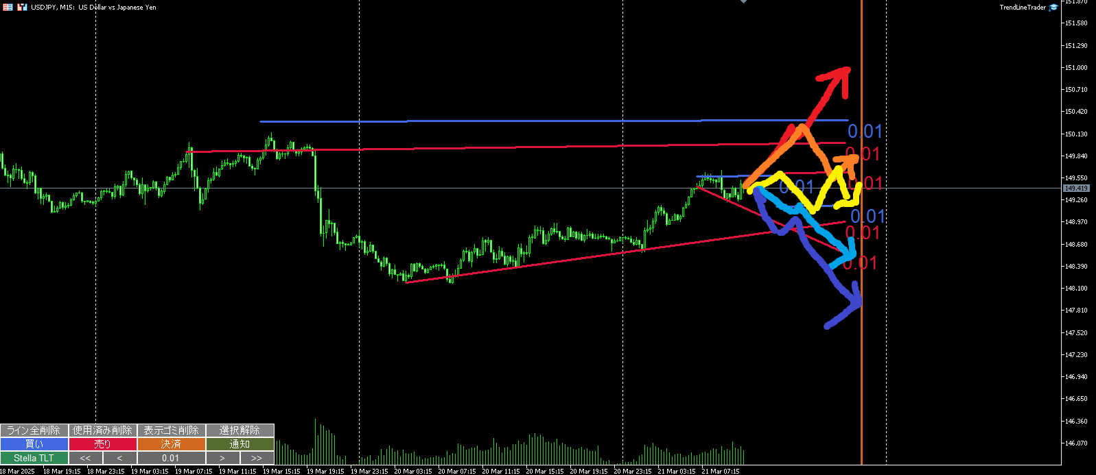 【2025年3月21日】トレンドラインを用いたマルチタイムフレーム相場分析(ドル円)