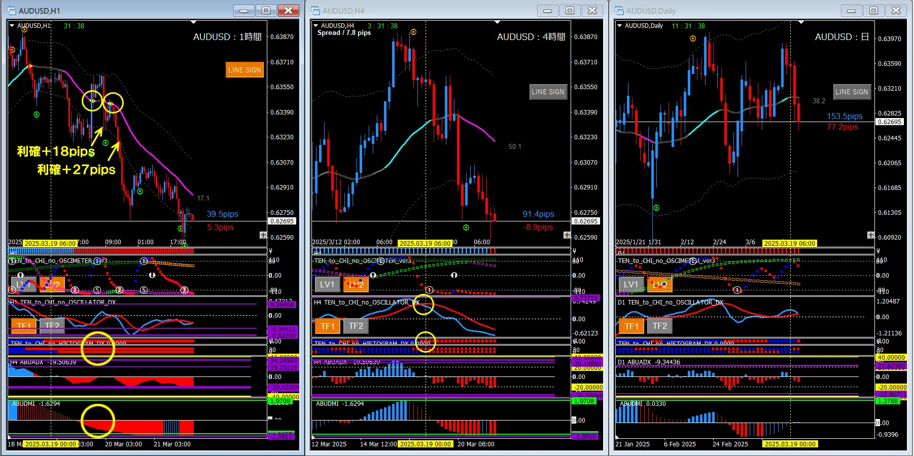 オジドル(AUDUSD)/ 1時間足+4時間足+日足 過去検証