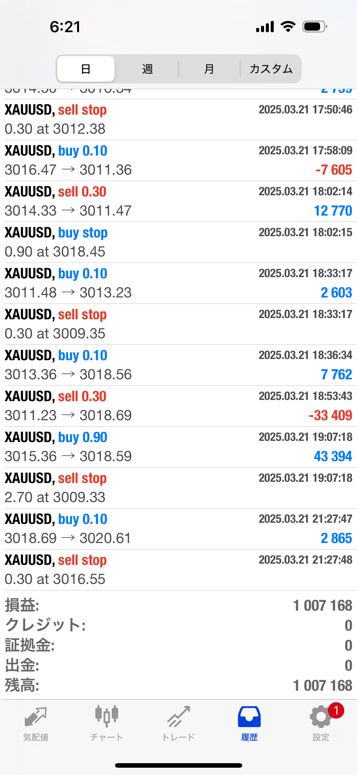先週3月17日(月)から3月21日(金)までのトレードプロコントローラー Daemon Trigger機能の逆指値両建てロジックゴールドでの週間稼働をまとめてみました。