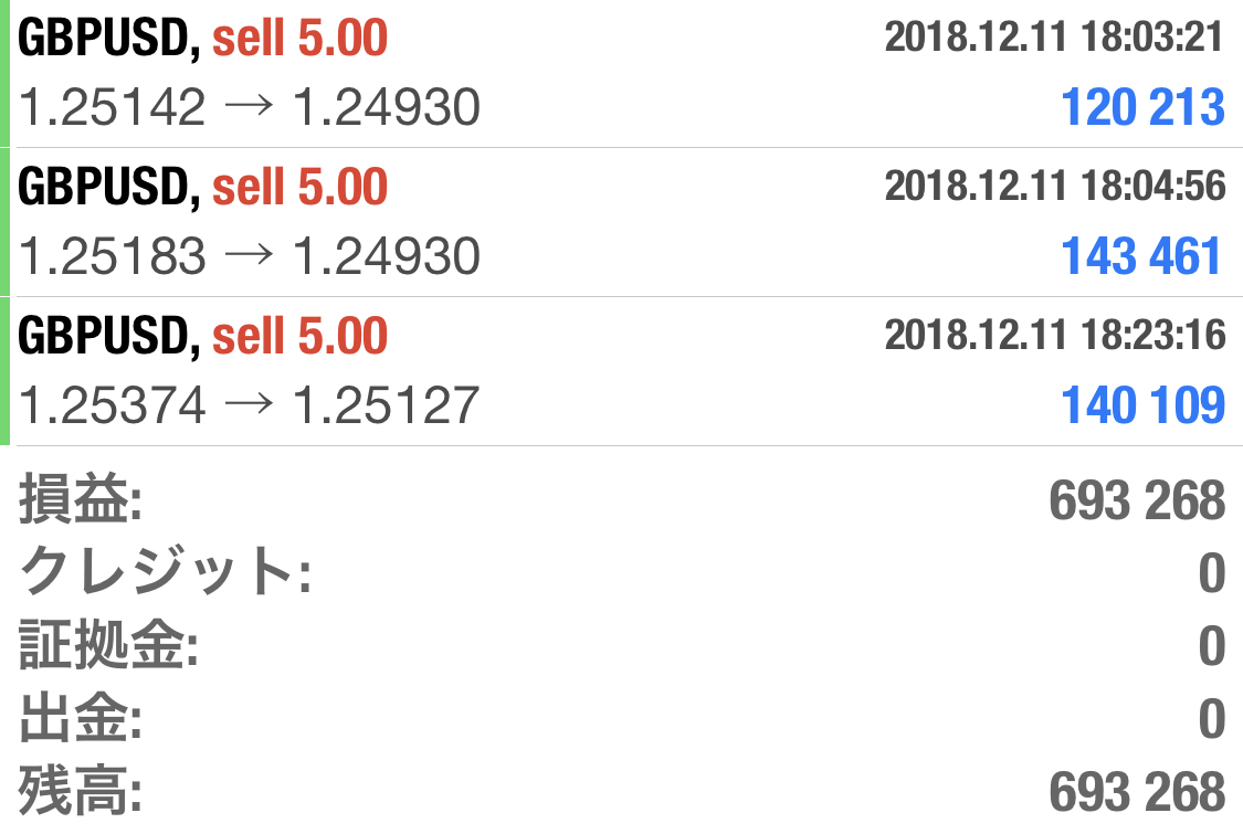 ポンドドル3ポジション合計で403,783円の利益となりました♪