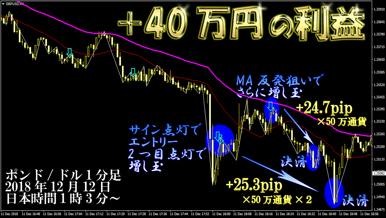 1分足スキャルは勝負が早くて楽ですね(^^♪