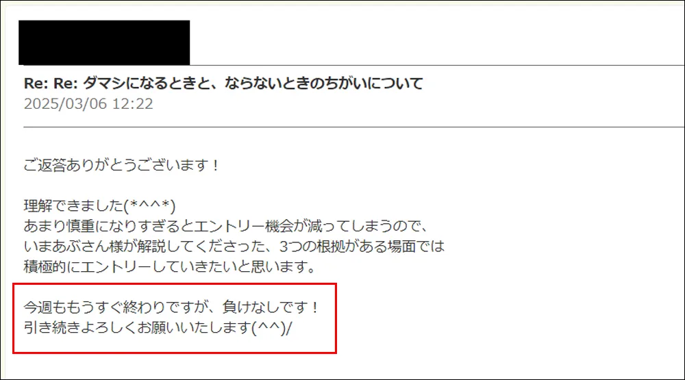 ・下記のリンクの記事ではユーザー様やモニター様からの貴重なDM、レビュー、ポストなどをご紹介させていただいております。勝ち報告を始め、有益な内容のDMを厳選しておりますので、きっと皆様の参考になると思います。随時更新しておりますので、お時間ある時にでも是非お読みください。