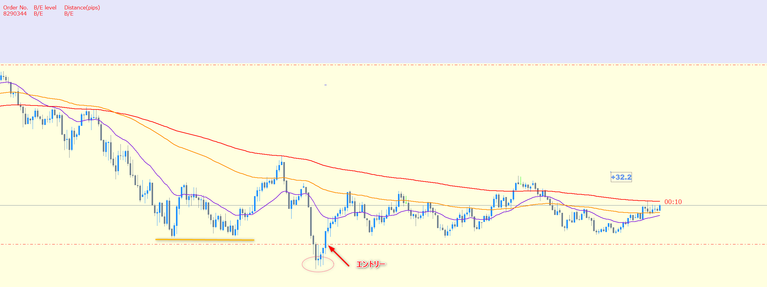 すでにRiskReward Breakeven(EA)がブレークイーブンを実行済ですので、残りポジションは放置中です。