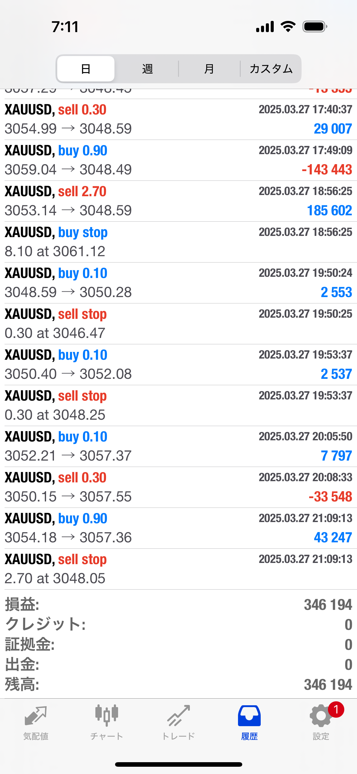トレードプロコントローラーの逆指値両建てロジック! 3月27日 日利3%超えのゴールドでの稼働状況!