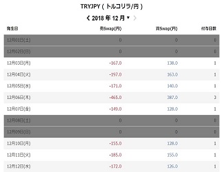 スワップ派「トルコ/円」のスワップポイント